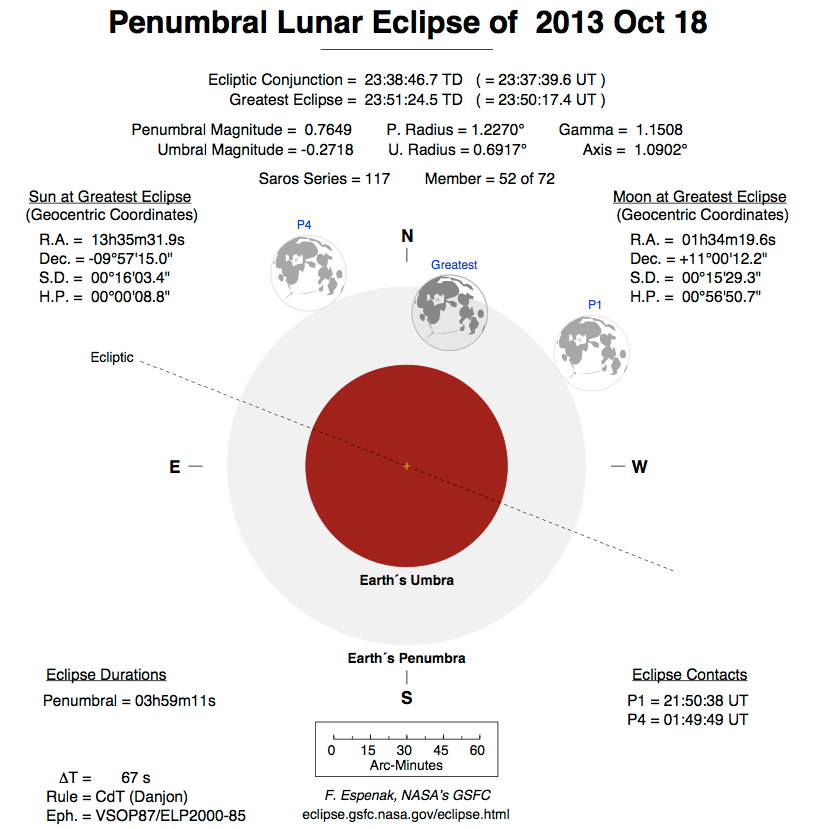 Το βράδυ της Παρασκευής προς Σάββατο (18 -19)Οκτωβρίου), στις 02:50 ώρα Ελλάδος, η Σελήνη θα περάσει μέσα από την παρασκιά της Γης και το νοτιότερο τμήμα της θα σκοτεινιάσει ελαφρώς.