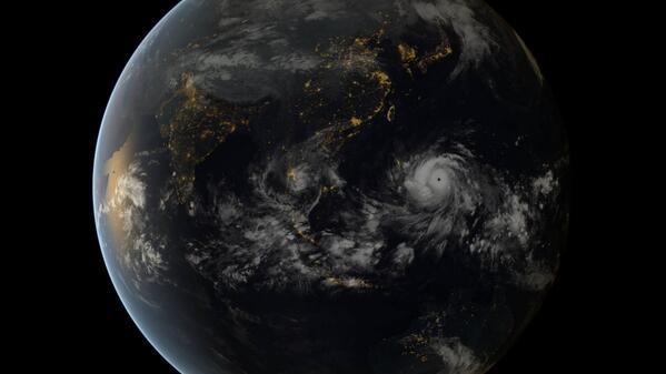 O σούπερ τυφώνας Haiyan πάνω από τις Φιλιππίνες όπως φαινόταν στις 9 Νοεμβρίου 2013 από τον Διεθνή Διαστημικό Σταθμό. (Φωτογραφία του αστροναύτη Karen Nyberg).