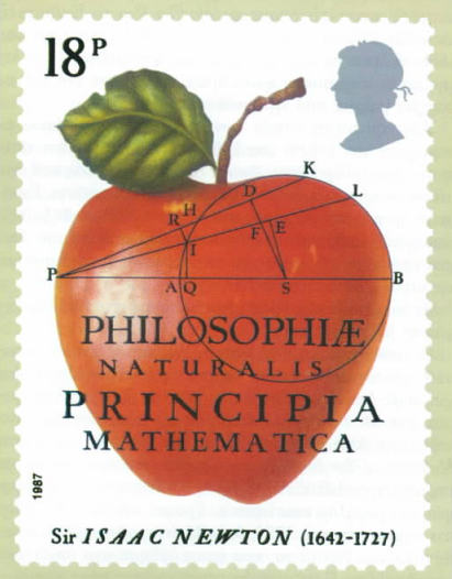 Βρετανικό γραμματόσημο του 1987, αναμνηστικό για τα τριακόσια χρόνια από την έκδοση των Principia του Νεύτωνα