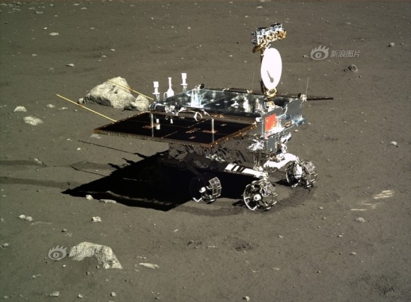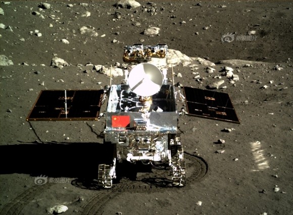 Στη συνέχεια βλέπουμε το ρόβερ Yutu που φωτογραφήθηκε από την κάμερα του Chang’e-3: