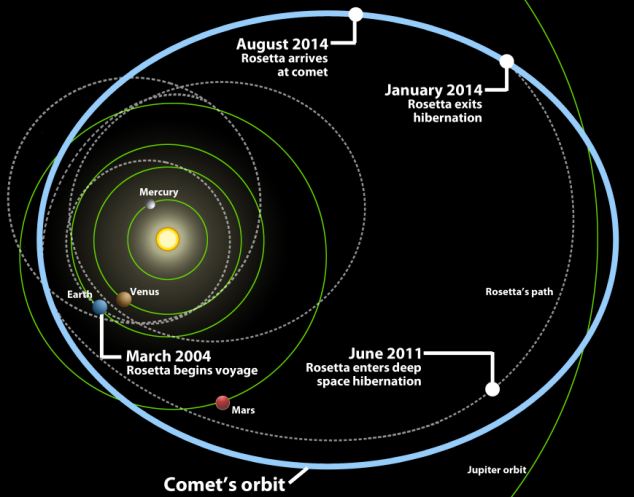 Το «Ροζέτα» και το 100 κιλών όχημα προσεδάφισης, με το όνομα Philae, που μεταφέρει, βρίσκονταν σε πλήρη αδράνεια τα τελευταία τρία χρόνια, σε μια προσπάθεια να εξοικονομήσουν ενέργεια. Τον Αύγουστο, το «Ροζέτα» θα προσεγγίσει τον στόχο του: τον ευμεγέθη κομήτη 67Ρ/Τσουριούμοφ-Γερασιμένκο που έχει διάμετρο 4 χλμ.