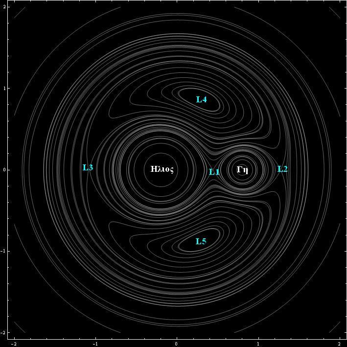 Η εξωτερική τροχιά είναι η τροχιά του Δία, σωστά; Στην ουσία είναι μια απεικόνιση αυτού του σχήματος, όπου στη θέση της Γης βάλε το Δία.