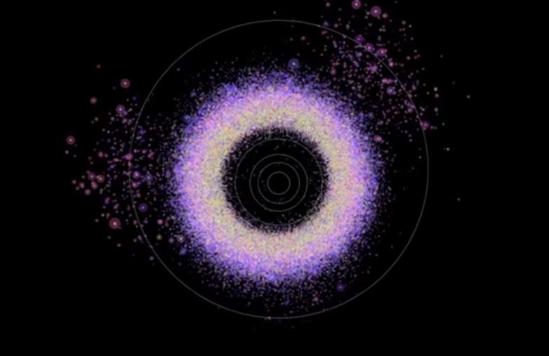 Στο βίντεο που ακολουθεί βλέπουμε πάνω από 100000 αστεροειδείς και τα χρώματά τους. Πρόκειται για ένα animation που δείχνει τις τροχιακές κινήσεις των αστεροειδών με τα σχετικά τους μεγέθη που παρατηρήθηκαν από το τηλεσκόπιο Sloan Digital Sky (SDSS):