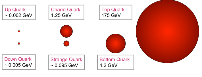 Το κορυφαίο (top) κουάρκ είναι το βαρύτερο από τα υπόλοιπα κουαρκ: πάνω (up), κάτω (down), παράδοξο (strange), γοητευτικό(charm) και πυθμένα (bottom)