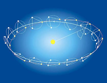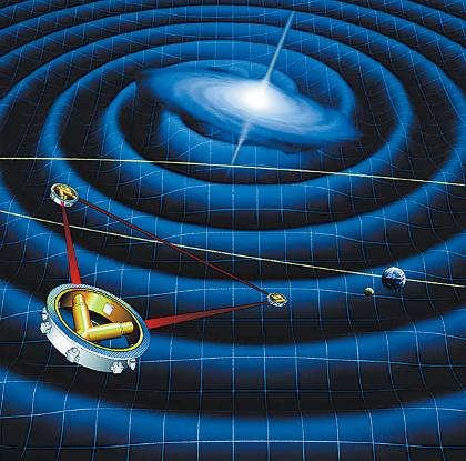 Σχέδιο του μελλοντικού διαστημικού ανιχνευτή βαρυτικών κυμάτων «LISA». Ο ανιχνευτής περιστρέφεται στην τροχιά της Γης γύρω από τον Ηλιο και αποτελείται από τρία διαστημόπλοια που σχηματίζουν ένα ισόπλευρο τρίγωνο με βραχίονες laser 5.000.000 χιλιομέτρων μήκους έκαστος. Η επένδυση της κατασκευής του, πολλών εκατοντάδων εκατομμυρίων, έχει παγώσει. Η λειτουργία του αναμένεται με μεγάλες προϋποθέσεις το 2018