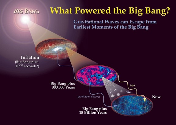 Tην περασμένη Δευτέρα, ο δρ Γκουθ φαίνεται να δικαιώθηκε. Ραδιοαστρονόμοι ανέφεραν ότι είδαν την αρχή της Μεγάλης Εκρηξης και ότι η υπόθεση του Γκουθ, γνωστή ως θεωρία του κοσμολογικού πληθωρισμού, φαντάζει σωστή. Χρησιμοποιώντας τηλεσκόπια στον Νότιο Πόλο, μια ομάδα αστρονόμων με επικεφαλής τον Τζον Κόβακ από το Κέντρο Αστροφυσικής Χάρβαρντ-Σμιθσόνιαν στο Κέμπριτζ της Μασαχουσέτης, έψαχναν για σημάδια που θα τους βοηθούσαν να κατανοήσουν τι συνέβη κατά την πρώτη εκείνη στιγμή του κοσμικού χρόνου, 13,8 δισεκατομμύρια χρόνια πριν. Αυτό που εντόπισαν ήταν ρυτιδώσεις στο «ύφασμα» του Διαστήματος, τα λεγόμενα βαρυτικά κύματα, τη σφραγίδα δηλαδή ότι το σύμπαν τσαλακώθηκε βίαια όταν ήταν ακόμη πολύ νεότερο και από ένα τρισεκατομμυριοστό του δευτερολέπτου.