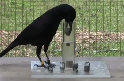 Ερευνητές του Πανεπιστημίου του Όκλαντ στη Νέα Ζηλανδία αιχμαλώτισαν έξι άγρια κοράκια και τα έφεραν ενώπιον ενός δύσκολου προβλήματος: κομμάτια λαχαριστού κρέατος που επέπλεαν σε έναν σωλήνα μισογεμάτο με νερό. Δίπλα στο σωλήνα οι ερευνητές είχαν αφήσει αντικείμενα όπως πετραδάκια και κομμάτια λάστιχου.