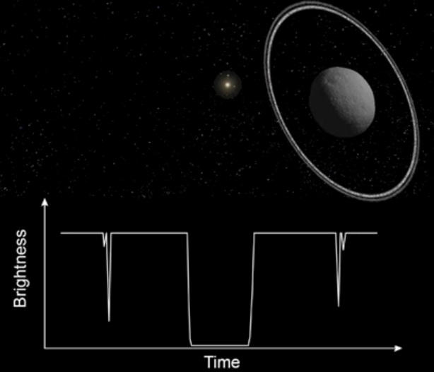 Στα βίντεο που ακολουθούν βλέπουμε πως οι αστρονόμοι ανακάλυψαν την ύπαρξη των δακτυλίων καταγράφοντας την απόκρυψη του φωτός ενός άστρου καθώς ο αστεροειδής περνούσε μπροστά από αυτό: