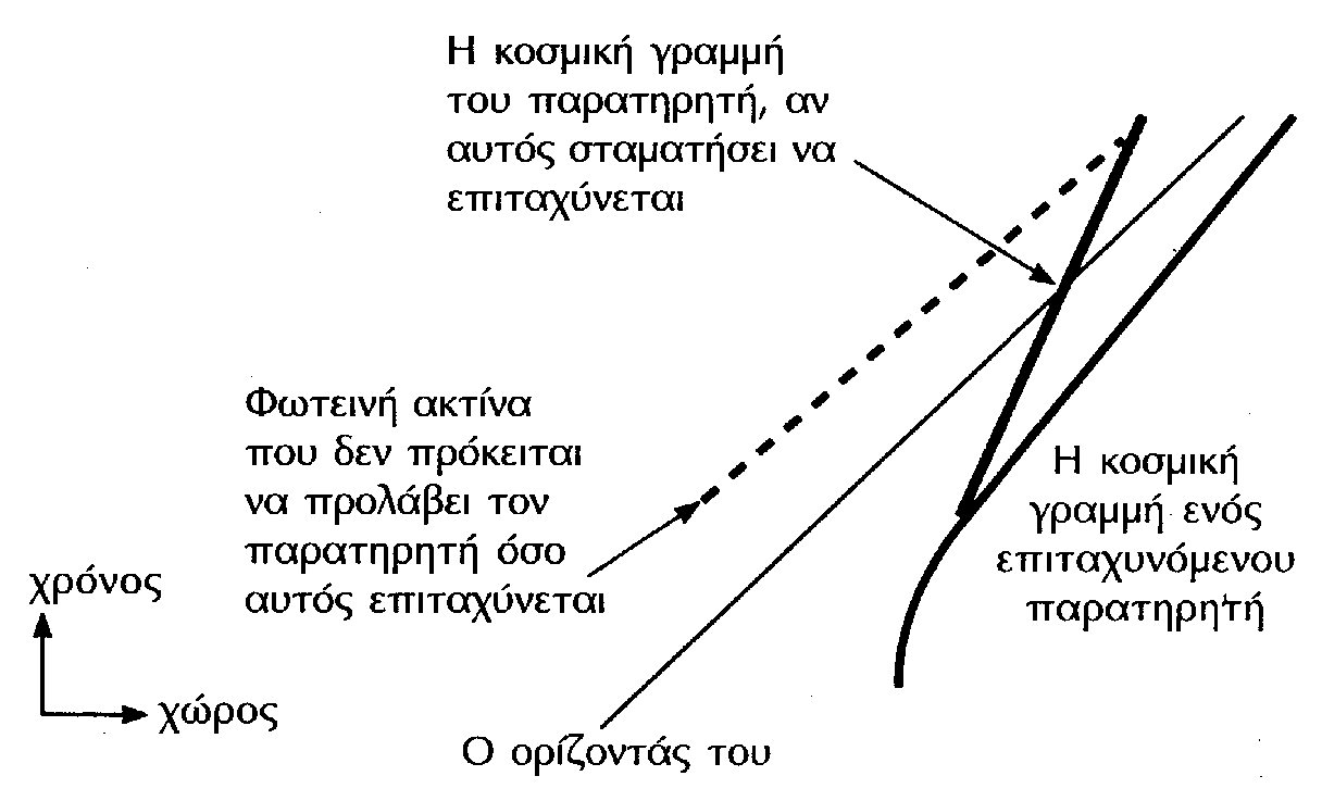 Αν όμως επιταχύνεστε διαρκώς, τότε το φως που εκπέμπεται σε αρκετή απόσταση πίσω σας δεν θα καταφέρει να σας φτάσει ποτέ.