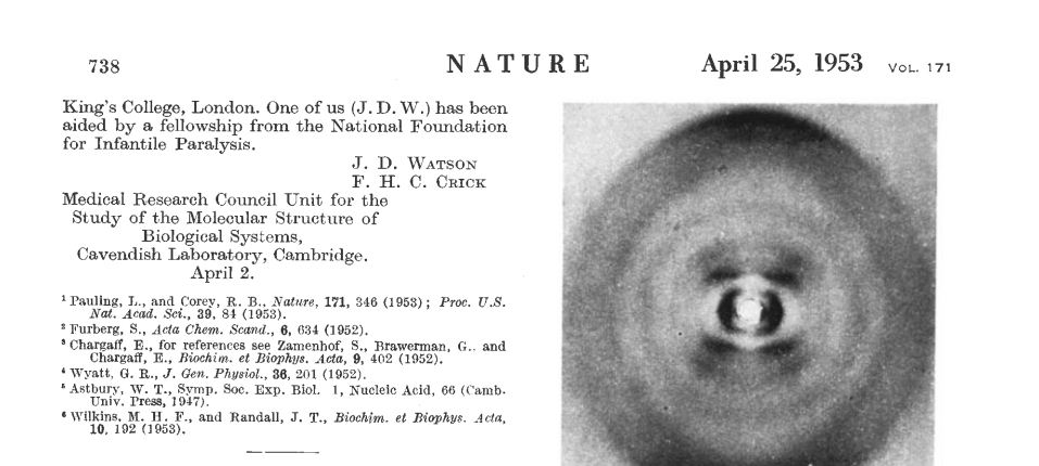 Τελικά, το άρθρο δημοσιεύθηκε στις 25 Απριλίου του 1953, και ήταν το σημαντικότερο γεγονός της βιολογίας μετά το βιβλίο του Δαρβίνου.