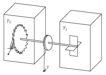 Ο Feynman «εφηύρε» μια συσκευή – σαν αυτή του παρακάτω (ή του αρχικού) σχήματος – που φαίνεται να παραβιάζει τον 2ο θερμοδυναμικό νόμο.