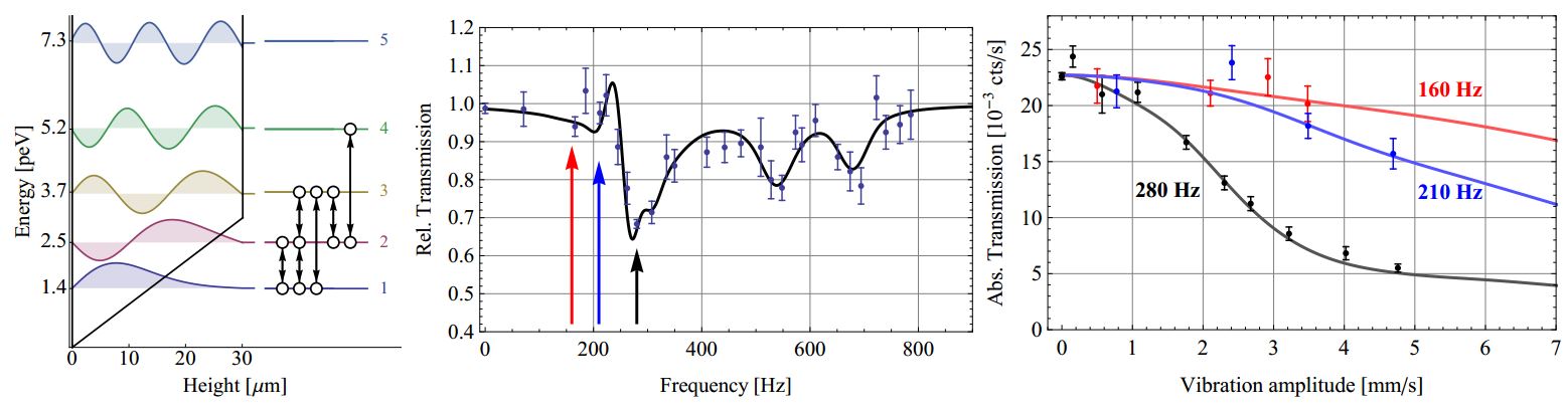 Στο ινστιτούτο Laue-Langevin, όπου οι Jenke et al πραγματοποιούν τα πειράματά τους με τα υπερ-ψυχρά νετρόνια (νετρόνια με κινητική ενέργεια μικρότερη από 0,3 μeV), μπορούν να μετρήσουν τις συχνότητες μετάβασης μεταξύ των τεσσάρων πρώτων ενεργειακών σταθμών. Τις χρησιμοποιούν για την αναζήτηση νέου τύπου πιθανών αλληλεπιδράσεων βαρυτικού τύπου σε αποστάσεις τάξης μικρομέτρου, που θα μπορούσαν να συσχετιστούν με την σκοτεινή ενέργεια και τη σκοτεινή ύλη.
