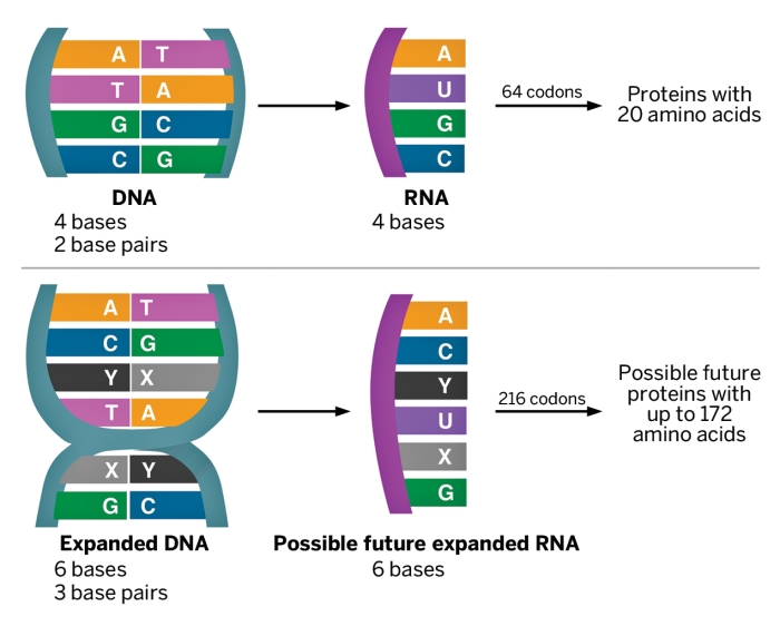 Εδώ και δισεκατομμύρια χρόνια «η ζωή στη Γη, σε όλη την ποικιλομορφία της, κωδικοποιείται σε δύο μόνο ζεύγη χημικών βάσεων DNA (Α-Τ και C-G ή αδενίνη-θυμίνη και κυτοσίνη-γουανίνη). Αυτές οι τέσσερις βάσεις αποτελούν τους κώδικες για τα 20 αμινοξέα, τους θεμέλιους λίθους από όπου δημιουργούνται σχεδόν όλες οι πρωτεΐνες και, τελικά, οι διάφορες μορφές ζωής.