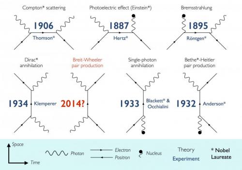 Η δυνατότητα δημιουργίας ύλης από το φως είναι μια από τις πιο εντυπωσιακές προβλέψεις της κβαντικής ηλεκτροδυναμικής. Ο απλούστερος μηχανισμός όπου καθαρό φως μετατρέπεται σε σωματίδια είναι ο μηχανισμός Breit-Wheeler, σύμφωνα με τον οποίο παράγεται ζεύγος ηλεκτρονίου-ποζιτρονίου: γ + γ´ → e+ + e, δεν έχει παρατηρηθεί ποτέ σε εργαστήριο.