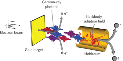 Σύμφωνα με την πειραματική διάταξη του παραπάνω σχήματος, υπερ-σχετικιστικά ηλεκτρόνια προσπίπτουν σε στόχο χρυσού, δημιουργώντας μια δέσμη φωτονίων υψηλής ενέργειας, εξαιτίας της ακτινοβολίας bremsstrahlung (ακτινοβολία από την επιβράδυνση φορτισμένων σωματιδίων). Το επόμενο στάδιο του πειράματος περιλαμβάνει το hohlraum (που στα γερμανικά σημαίνει «άδειο δωμάτιο»), όπου υψηλής ενέργειας λέιζερ δημιουργούν στην εσωτερική επιφάνεια από χρυσό ένα θερμικό πεδίο ακτινοβολίας, που συνίσταται από φωτόνια σαν αυτά που εκπέμπονται από άστρα. Η αρχική δέσμη των φωτονίων από το πρώτο στάδιο του πειράματος συγκρούεται με τα φωτόνια του hohlraum με αποτέλεσμα την δημιουργία ζεύγους ηλεκτρονίων ποζιτρονίων.