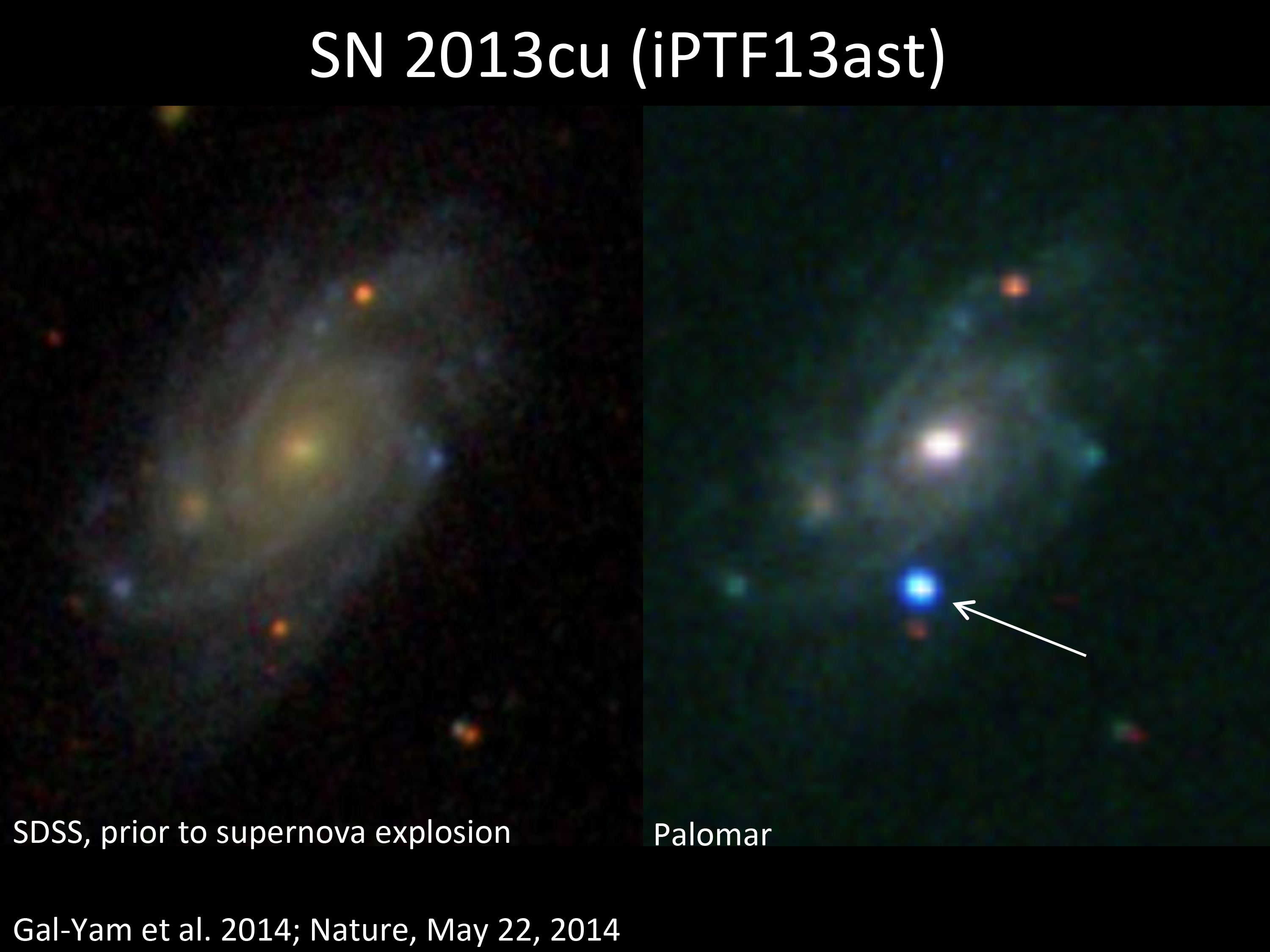 Για πρώτη φορά ωστόσο, σε μία δημοσίευση στο περιοδικό Nature παρουσιάζονται στοιχεία για σουπερνόβα από ένα άστρο Wolf-Rayet. Η έκρηξη που ονομάστηκε SN 2013cu παρατηρήθηκε με τη χρήση βελτιωμένων τεχνικών παρατήρησης με ρομποτικά συστήματα, από μία ομάδα του πανεπιστημίου του Μπέρκλι, με τη βοήθεια του τηλεσκοπίου 60 ιντσών στο παρατηρητήριο Palomar στην Καλιφόρνια των ΗΠΑ.