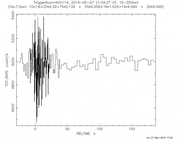 Φάσμα ακτίνων γάμμα που κατέγραψε στις 27 Μαΐου 2014 το Swift Burst Alert Telescope. Η ακτινοβολία προερχόταν από τον γαλαξία Μ31 (Ανδρομέδα).