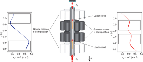 Στην εργασία που δημοσιεύεται στο περιοδικό Nature με τίτλο «Precision measurement of the Newtonian gravitational constant using cold atoms«, περιγράφoνται οι μετρήσεις βαρυτικής έλξης (μικροσκοπικής κλίμακας) μεταξύ ατόμων ρουβιδίου και μιας διάταξης κυλίνδρων βολφραμίου μάζας 516 κιλών.