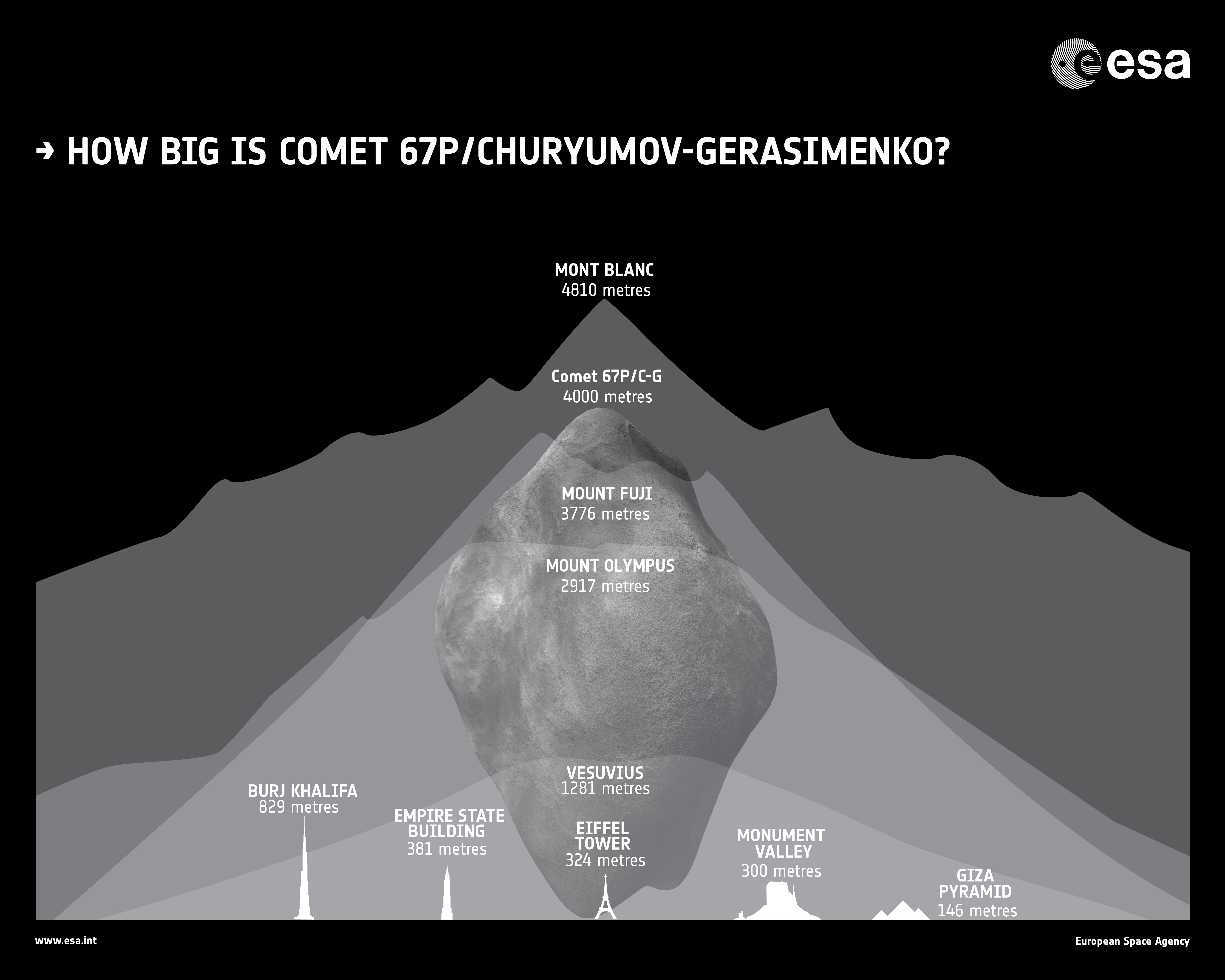 Η εικόνα που ακολουθεί μας βοηθά να συνειδητοποιήσουμε το μέγεθος του κομήτη 67P/Churyumov-Gerasimenko: