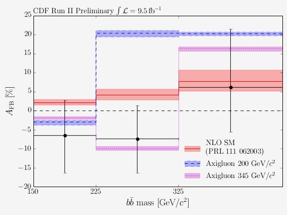 Στην πραγματικότητα, όμως, υπάρχουν κάποια λεπτά σημεία – κατανοητά πλήρως εντός του ΚΠ- τα οποία αναγκάζουν αυτήν τη ποσότητα να αποκλίνει ελάχιστα από το μηδέν. Το φαινόμενο εξαρτάται επίσης από τη συνολική ενέργεια των αντιδράσεων, και επομένως είναι λογικό να μετράει κανείς την ασυμμετρία ως συνάρτηση της συνολικής μάζας ηρεμίας του συστήματος top-αντιtop, η οποία και μπορεί να μετρηθεί εύκολα. Στα πρώτα αποτελέσματα των CDF και DZERO, αυτή η ασυμμετρία φάνηκε να αυξάνεται όσο μεγάλωνε και η μάζα του συστήματος: ό,τι ακριβώς θα περίμενε κανείς να δει εάν κρυβόταν πίσω από το φαινόμενο νέα φυσική στις πολύ υψηλές ενέργειες. Το φαινόμενο βρισκόταν σε επίπεδο σημαντικότητας 3σ κατά τις πρώτες αναλύσεις….