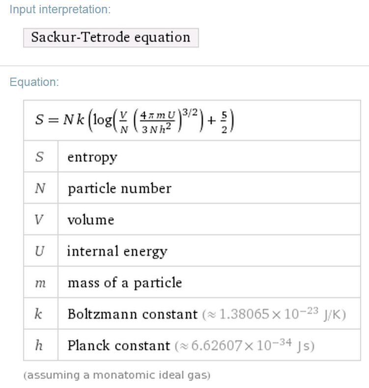 Έτσι, σε συνδυασμό με την εξίσωση του Boltzmann για την εντροπία, προέκυψε μια έκφραση για την απόλυτη εντροπία, η εξίσωση Sackur-Tetrode: