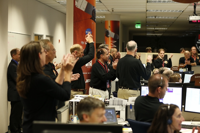 Χειροκροτήματα ακούστηκαν στην αίθουσα ελέγχου της αποστολής στο Εργαστήριο Jet Propulsion στην Καλιφόρνια κατά την στιγμή της επιβεβαίωσης της εισόδου του διαστημικού σκάφους σε τροχιά σύμφωνα με τις εικόνες που αναμετέδωσε ζωντανά η NASA.