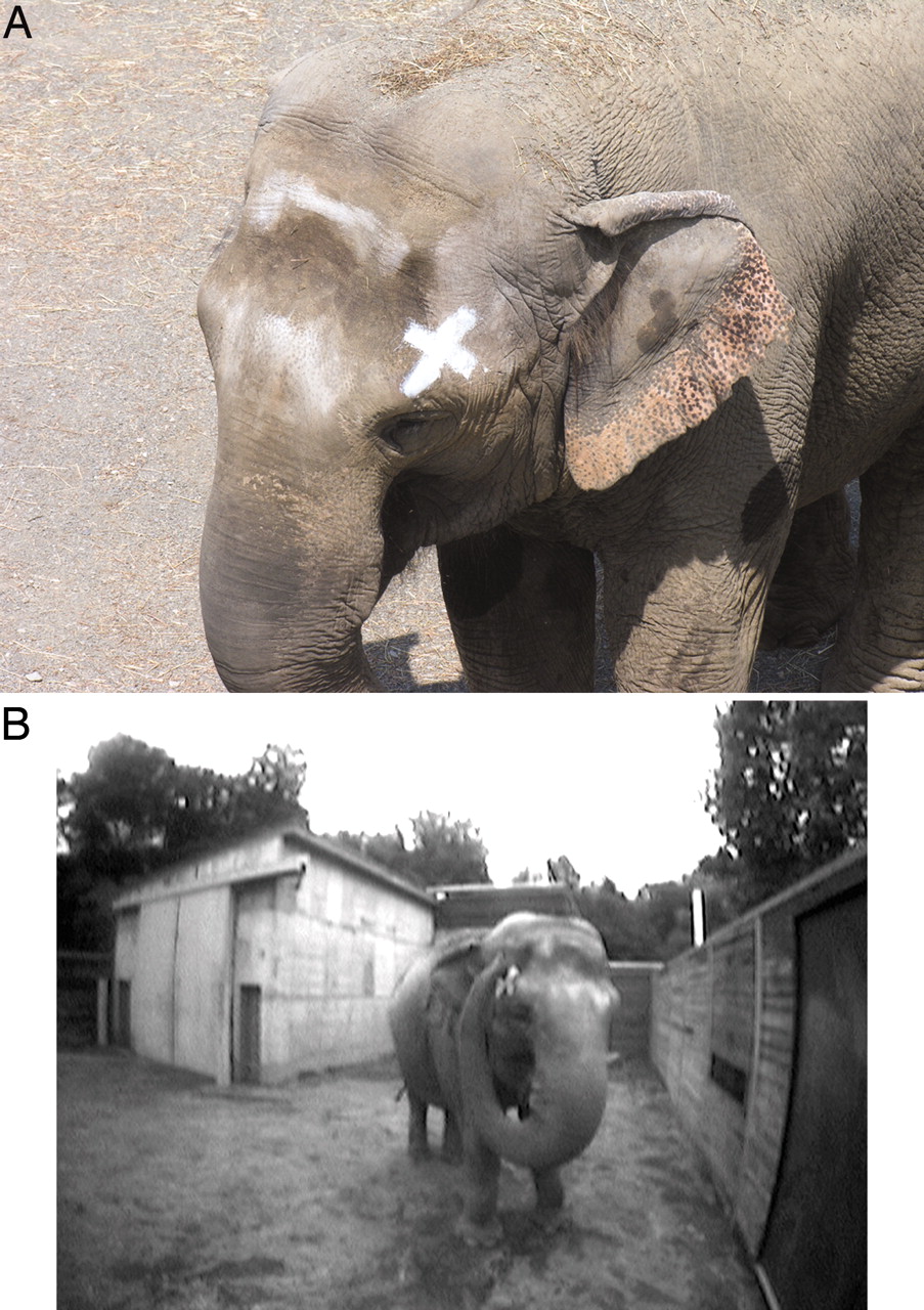 Ο ελέφαντας, που ονομάζεται Happy, επανειλημμένα προσπαθεί να αγγίξει ένα σημάδι ζωγραφισμένο στο κεφάλι του, όπως βλέπουμε στο βίντεο ΕΔΩ.