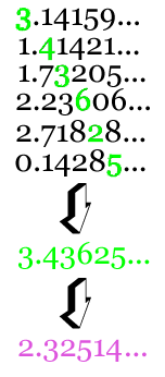 Παρατηρείστε τα υπογραμμισμένα ψηφία. Χρησιμοποιώντας αυτά τα ψηφία μπορούμε να δημιουργήσουμε τον δεκαδικό αριθμό: