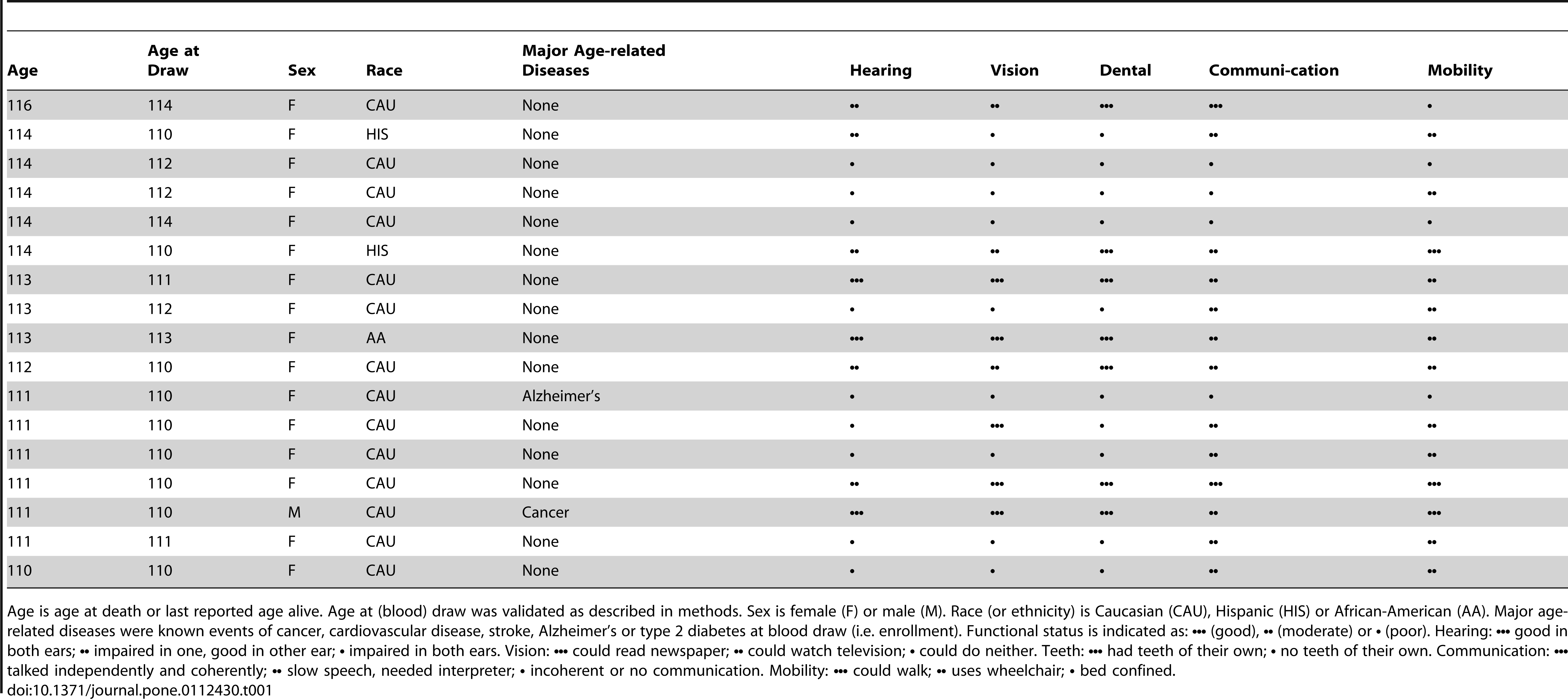 Οι άνθρωποι που ξεπερνούν τα 100, είναι πολύ λιγότερο πιθανό (ποσοστό μόλις 19%) να πάθουν καρκίνο, έμφραγμα ή εγκεφαλικό, ενώ αντίθετα ο μέσος άνθρωπος στην ηλικία των 85 ετών έχει πιθανότητα περίπου 50% να διαγνωστεί με καρκίνο και 35% με καρδιολογικά προβλήματα. Η νέα μελέτη ήταν η πρώτη που ανέλυσε το DNA πολλών υπεραιωνόβιων (και οι 17 έχουν πεθάνει στο μεταξύ σε μέση ηλικία 112 ετών), συγκρίνοντάς το με το DNA 34 ατόμων ηλικίας 21 έως 79 ετών. Είχαν προηγηθεί μεμονωμένες έρευνες στο γονιδίωμα μόνο ενός ή δύο υπεραιωνόβιων ανθρώπων.