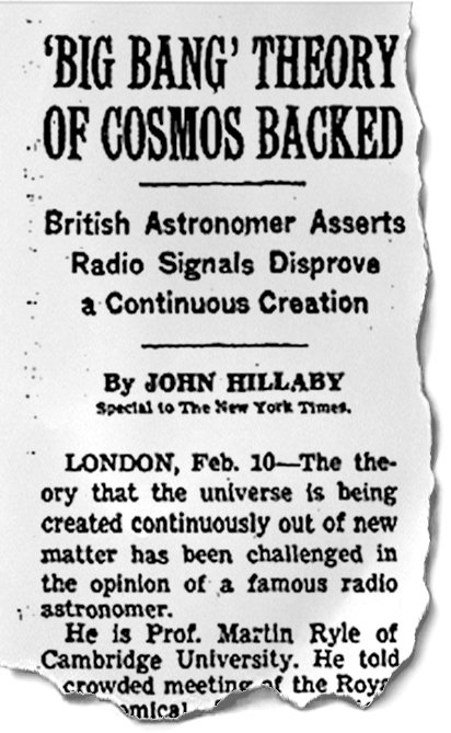 Ο Nichοlas Bakalar έψαξε (και βρήκε) στα παλιά φύλλα της εφημερίδας «The New York Times» τις πρώτες αναφορές σχετικά με την θεωρία της Μεγάλης Έκρηξης.