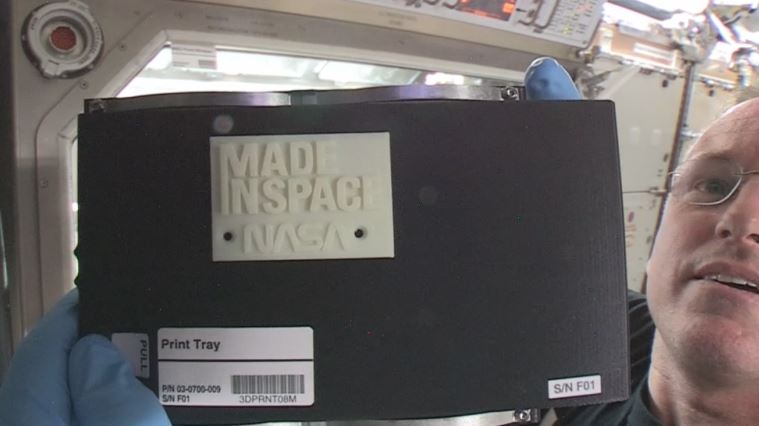Μια ορθογώνια πλαστική πλακέτα -ένα ανταλλακτικό για τον ίδιο τον εκτυπωτή- με την επιγραφή «Κατασκευασμένο στο Διάστημα» (Made in Space/NASA) μόλις εκτυπώθηκε από τον Αμερικανό αστροναύτη Μπάρι Γουίλμορ στον Διεθνή Διαστημικό Σταθμό (ISS). Η εντολή για την εκτύπωση στάλθηκε στον εκτυπωτή από το κέντρο ελέγχου στη Γη και ο αστροναύτης απλώς έβγαλε το αντικείμενο από τον εκτυπωτή.