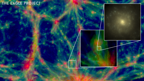 Η προσομοίωση δημιουργήθηκε στα πλαίσια του πρότζεκτ EAGLE (Evolution and Assembly of GaLaxies and their Environments), στο οποίο επικεφαλής είναι το πανεπιστήμιο του Ντάραμ στη Βρετανία και το ολλανδικό πανεπιστήμιο του Λάιντεν. Στόχος του EAGLE είναι να καλύψει τα μειονεκτήματα των λογισμικών που έχουν αναπτυχθεί έως σήμερα για τον ίδιο σκοπό, και τα οποία «δημιουργούν» σύμπαντα με γαλαξίες που δεν αντιστοιχούν στην ηλικία, την ποικιλία και τη μάζα των πραγματικών γαλαξιών. Επίσης, οι παλιότερες προσομοιώσεις δεν περιείχαν αρκετά μεγάλο αριθμό γαλαξιών, ώστε να περιγράφουν με αξιοπιστία τις αλληλεπιδράσεις τους.
