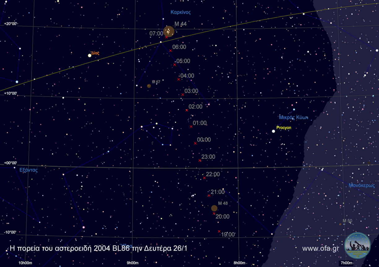 Την Δευτέρα 26 Ιανουαρίου ο αστεροειδής 2004 BL86 με διάμετρο περίπου 500 μέτρα, θα πλησιάσει την Γη σε απόσταση περίπου τριπλάσια της απόστασης Γης – Σελήνης (1.2 εκατομμύρια χιλιόμετρα), χωρίς να υπάρχει οποιαδήποτε πιθανότητα σύγκρουσης. Η διέλευση του 2004 BL86 είναι η κοντινότερη που θα πραγματοποιήσει γνωστός αστεροειδής μέχρι το 2027.