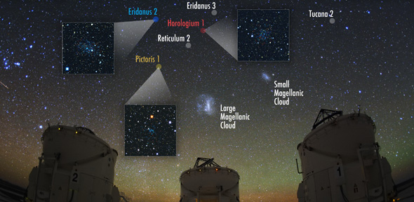 Οι νέοι νάνοι γαλαξίες ανακαλύφθηκαν στο νότιο ημισφαίριο της Γης, κοντά στο Μεγάλο και στο Μικρό Μαγγελανικό Νέφος, τους έως σήμερα μεγαλύτερους και πιο γνωστούς νάνους γαλαξίες σε τροχιά γύρω από τον δικό μας μεγάλο γαλαξία.