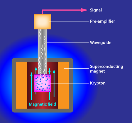 Τα ηλεκτρόνια, που εκπέμπονται από το ισότοπο 83mKr, οδηγούνται σε έναν μικρό θάλαμο εκτεθειμένο σε ισχυρό μαγνητικό πεδίο και ο ανιχνευτής που συναρμολόγησαν οι ερευνητές μπόρεσε να καταγράψει τις ραδιοεκπομπές μεμονωμένων ηλεκτρονίων για χρονικό διάστημα αρκετών χιλιοστών του δευτερολέπτου, αρκετά για να δει τη συχνότητα της ακτινοβολίας να αυξάνεται καθώς τα ηλεκτρόνια κινούνταν στις σπειροειδείς, όλο και πιο κλειστές, τροχιές τους. Πρόκειται για ένα εντυπωσιακό επίτευγμα, καθώς η ισχύς της ακτινοβολίας που ανιχνεύθηκε ήταν της τάξης του ενός τετράκις εκατομμυριοστού του watt.