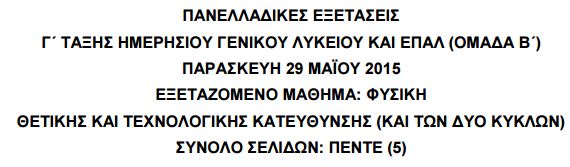 ΘΕΜΑΤΑ ΦΥΣΙΚΗΣ ΚΑΤΕΥΘΥΝΣΗΣ Γ’ ΛΥΚΕΙΟΥ 2014 (σε pdf): πατήστε ΕΔΩ