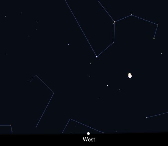Η Αφροδίτη και ο Δίας βρίσκονται στη πιο κοντινή τους απόσταση, 0,3° μακριά (στο 1/3 της διαμέτρου της πανσελήνου). Ο Δίας είναι από πάνω. Και οι δύο χωράνε στο ίδιο οπτικό πεδίο ενός τηλεσκοπίου με χαμηλή μεγέθυνση. Η Αφροδίτη είναι μια παχιά ημισέληνος, ενώ ο Δίας είναι πολύ πιο θαμπή, ελαφρώς πεπλατυσμένη σφαίρα σχεδόν στο ίδιο μέγεθος. Στην πραγματικότητα είναι πολύ μακριά στο διάστημα. Η Αφροδίτη είναι σήμερα 77 εκατομμύρια χιλιόμετρα από τη Γη. Ο Δίας είναι δεκάδες φορές πιο μακριά, στα 904 εκατομμύρια χιλιόμετρα, από την άλλη πλευρά του ηλιακού συστήματος.