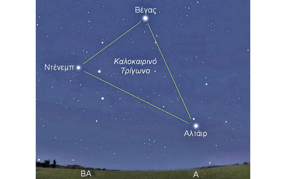 Γι’ αυτό, και παρ’ όλο που μπορεί να δυσκολευόμαστε κάπως να το πιστέψουμε, είναι γεγονός ότι μπορούμε να δούμε το μακρινό παρελθόν όλων όσα βλέπουμε, γιατί απλούστατα όλα όσα παρατηρούμε στον ουρανό έχουν ήδη συμβεί. Το ίδιο συμβαίνει και με το «καλοκαιρινό τρίγωνο» άστρων. Το άστρο Αλτάιρ στον αστερισμό του Αετού, για παράδειγμα, βρίσκεται σε απόσταση 17 ετών φωτός από μας, που σημαίνει ότι το φως του τρέχοντας με την ταχύτητα των 300.000 χιλιομέτρων το δευτερόλεπτο χρειάζεται 17 χρόνια για να φτάσει από εκεί μέχρις εδώ. Ο Βέγας, στον αστερισμό της Λύρας, απέχει 25 έτη φωτός από τη Γη. Ετσι ένας σημερινός 25χρονος μπορεί να δει απόψε πώς ήταν το άστρο αυτό τη χρονιά που γεννήθηκε. Ενώ το φως που θα φτάσει απόψε από τον Ντένεμπ στον αστερισμό του Κύκνου άρχισε το ταξίδι του πριν από 1.700 χρόνια, όταν ο Μέγας Κωνσταντίνος θεμελίωνε στο αρχαίο Βυζάντιο την Πόλη που πήρε τ’ όνομά του.