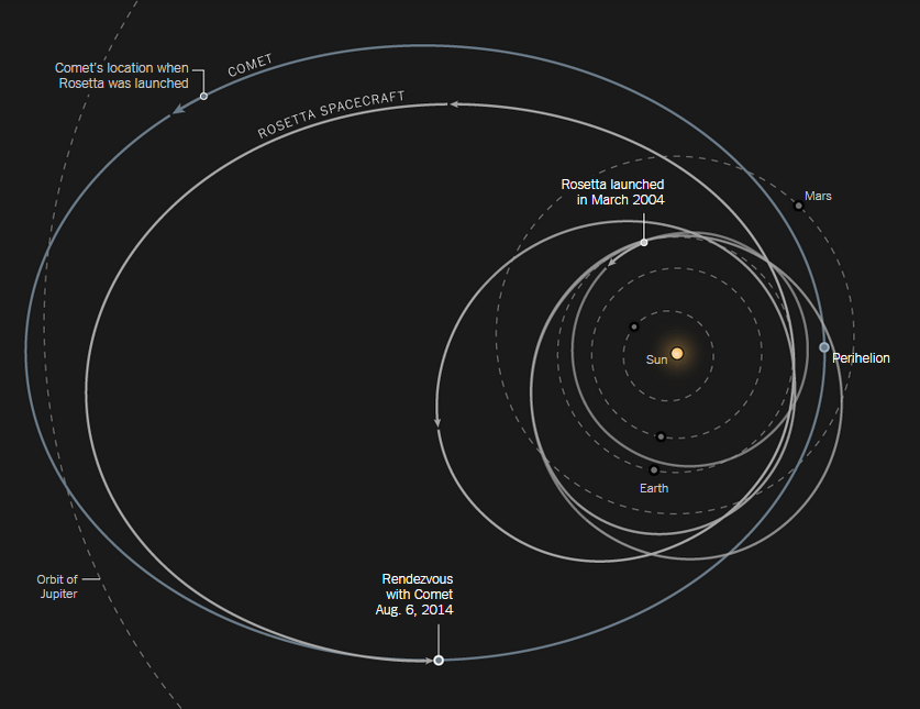 Αφότου το διαστημικό σκάφος Rosetta προσέγγισε τον κομήτη, πριν από ένα χρόνο, ο κομήτης διάνυσε 750.000.000 χιλιόμετρα κατά μήκος της τροχιάς του προς τον Ήλιο.
