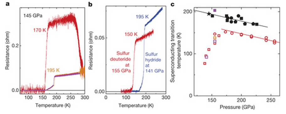 Το υδρόθειο (Η2S), η ουσία που μεταξύ άλλων κάνει τα χαλασμένα αυγά να βρωμάνε, μετατράπηκε σε έναν υπεραγωγό σε θερμοκρασία 203 Κ (ή –70°C), που αποτελεί ρεκόρ υψηλότερης θερμοκρασίας για υπεραγώγιμο υλικό.