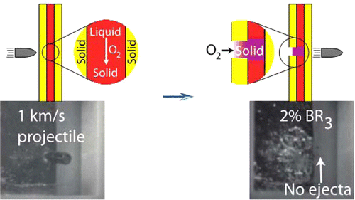 Οι ερευνητές περιγράφουν τη δουλειά τους σε δημοσίευση στο ACS Macro Letters. Αυτό που έκαναν ήταν να δημιουργήσουν ένα υλικό το οποίο παραπέμπει στους…«αθάνατους» (καθώς επιδιορθώνονταν μόνοι τους συνέχεια, όσες ζημιές και να δέχονταν) κινηματογραφικούς «Εξολοθρευτές», κλείνοντας ένα αντιδραστικό υγρό ανάμεσα σε δύο στρώματα στέρεου πολυμερούς. Όταν το υλικό υφίσταται διάτρηση, το υγρό αντιδρά γρήγορα με το οξυγόνο (το οποίο θα υπάρχει στο εσωτερικό ενός διαστημοπλοίου), στερεοποιούμενο και δημιουργώντας μια «σφραγίδα» μέσα σε διάστημα μικρότερο του ενός δευτερολέπτου.