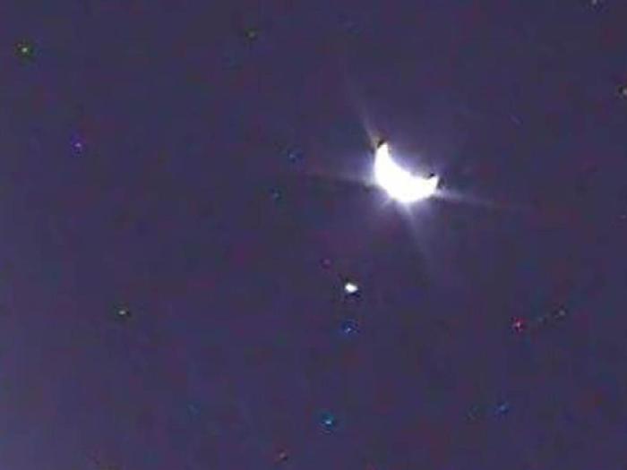 Μια εικόνα της Γης, που λήφθηκε από τον δορυφόρο τξς NASA, LCROSS, που δείχνει τον πλανήτη σαν «ημισέληνο». Το μικρότερο φως προς τα αριστερά είναι η Σελήνη.