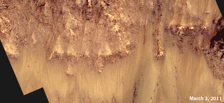 1. Από ό,τι κατάλαβα, πρόκειται για την ανίχνευση ρεόντος νερού (μάλλον αλμυρού) στην επιφάνεια του Άρη.