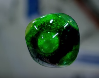 O Αμερικανός αστροναύτης Scott Kelly αναμειγνύει χρώμα και αναβράζοντα δισκία σε μία σφαίρα νερού, υπό συνθήκες έλλειψης βαρύτητας στον Διεθνή Διαστημικό Σταθμό.