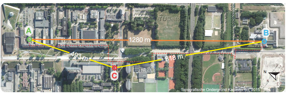 Οι ερευνητές Hensenl et al χρησιμοποίησαν μια διαφορετική τεχνική για να αποφύγουν το παραπάνω πρόβλημα. Άρχιζαν με δυο ηλεκτρόνια μη – συμπλεγμένα μεταξύ τους, που βρίσκονταν σε κρυστάλλους διαμαντιού, σε διαφορετικά εργαστήρια 1,3 χιλιόμετρα μακριά. Κάθε ηλεκτρόνιο βρίσκονταν σε σύμπλεξη με ένα φωτόνιο και στη συνέχεια τα δυο φωτόνια κατευθύνονταν σε μια τρίτη θέση όπου συμπλέκονταν μεταξύ τους.