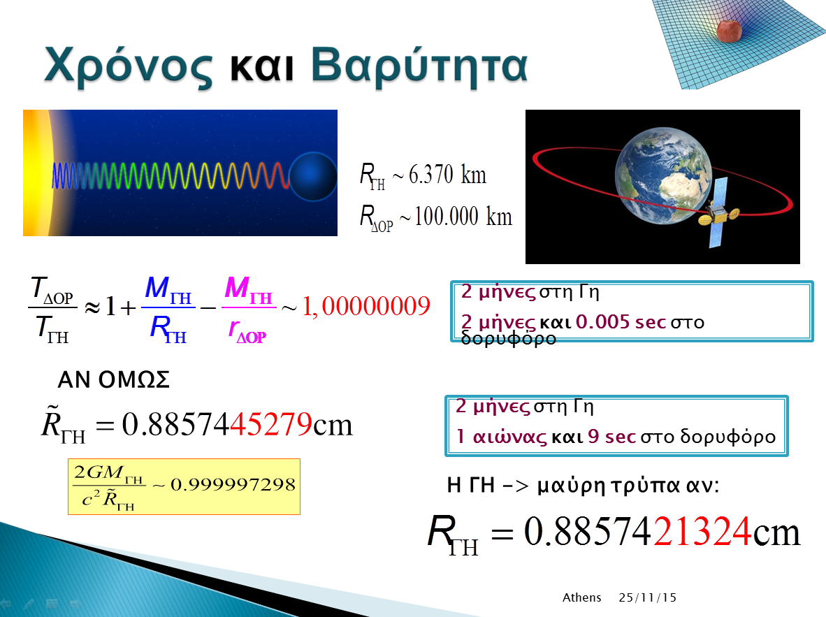 3. «’Ενας αιώνας κι εννιά δευτερόλεπτα Γενικής Θεωρίας Σχετικότητας που άλλαξαν την αντίληψή μας για τον κόσμο» [διαφάνειες σε μορφή powerpoint με ενσωματωμένα βίντεο]