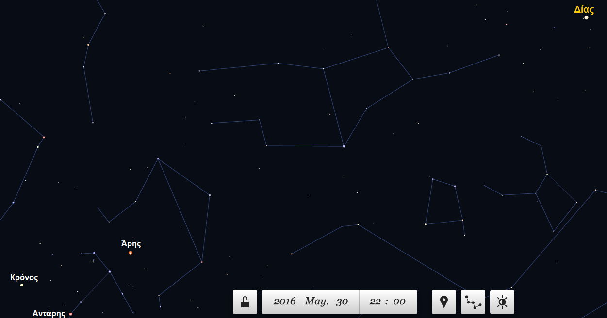 30-5-2016, ώρα 10 μμ: Ο Δίας κινείται ψηλά στον νοτιοδυτικό ουρανό (κλικ πάνω στην εικόνα για μεγέθυνση)