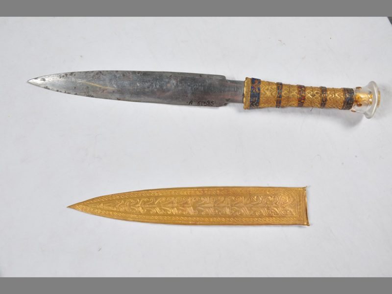 Το περίτεχνο μαχαίρι βρέθηκε ακουμπισμένο στον μηρό της μούμιας του Τουταγχαμών όταν ο βρετανός αρχαιολόγος Χάουαρντ Κάρτερ άνοιξε τον τάφο στην Κοιλάδα των Βασιλέων το 1925. Χρονολογείται στον 14ο αιώνα π.Χ. και είναι ένα από τα σχετικά λίγα σιδερένια αντικείμενα που κατασκευάστηκαν πριν περάσει η Αίγυπτος στην Εποχή του Σιδήρου -οι πρώτες ενδείξεις για χυτήρια σιδήρου στην Αίγυπτο χρονολογούνται στον έκτο αιώνα π.Χ.