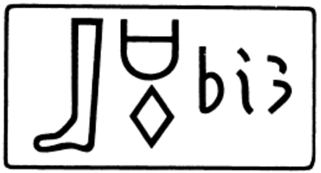 Αιγυπτιακό ιερογλυφικό που σημαίνει «σίδερο από τον ουρανό» (Πηγή: Annual Meeting of the Meteoritical Society: results from meteorite, lunar and planetary research, Vail, CO (USA), 19 – 23 Jul 1993. Abstracts.)
