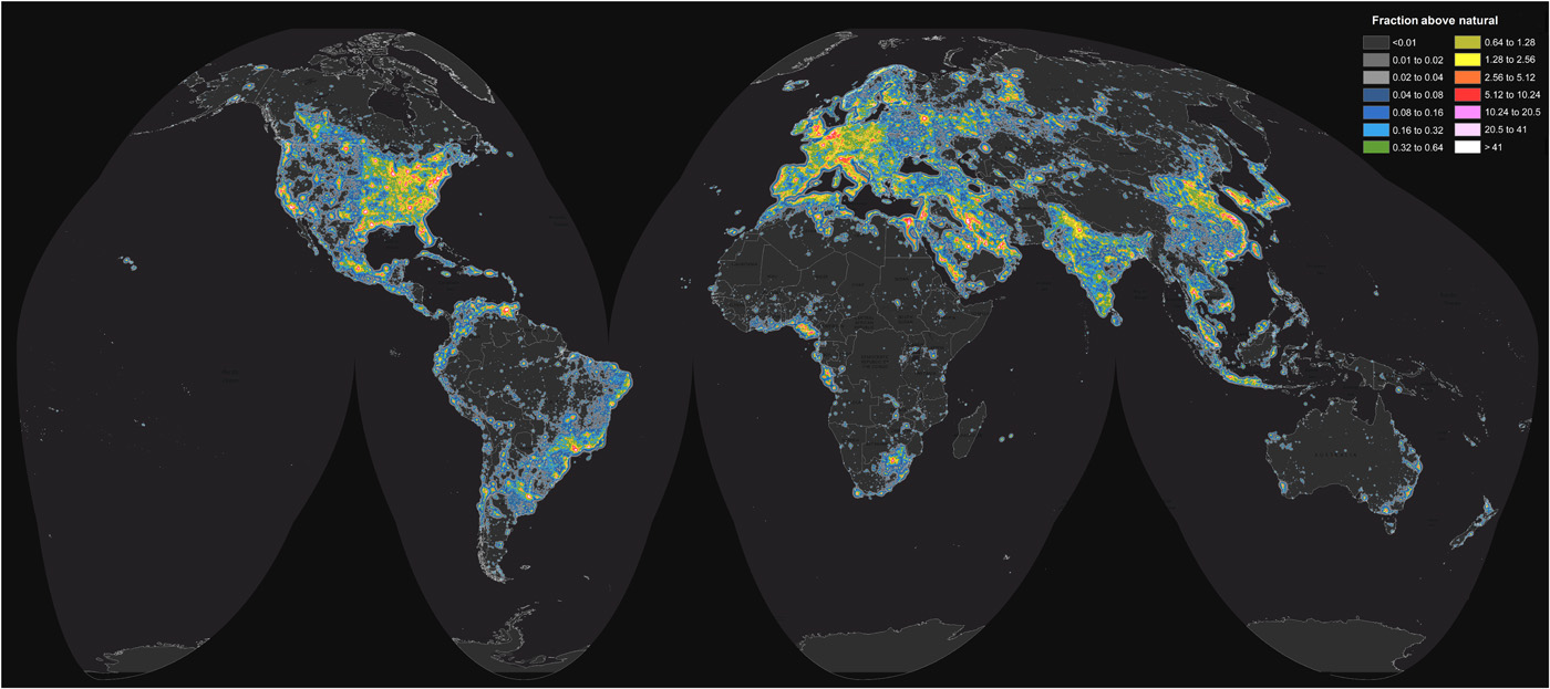 Ο Άτλαντας καταδεικνύει πως το 80% του κόσμου και το 99% των ΗΠΑ και της δυτικής Ευρώπης ζουν κάτω από ουράνιους θόλους πλημμυρισμένους από τεχνητό φως. Ορισμένες χώρες, δε, όπως η Σιγκαπούρη, βιώνουν μία τέτοια τεχνητά φωτισμένη πραγματικότητα που οι κάτοικοί τους ουσιαστικά δεν γνωρίζουν τι σημαίνει ‘σκοτία νυκτός’.